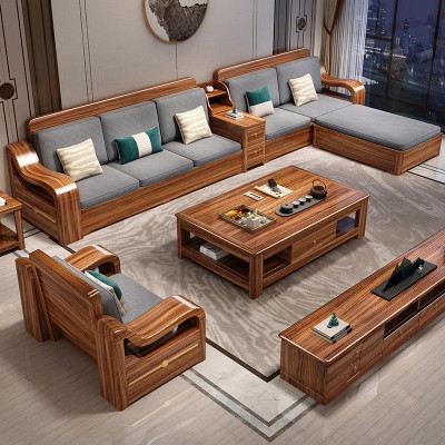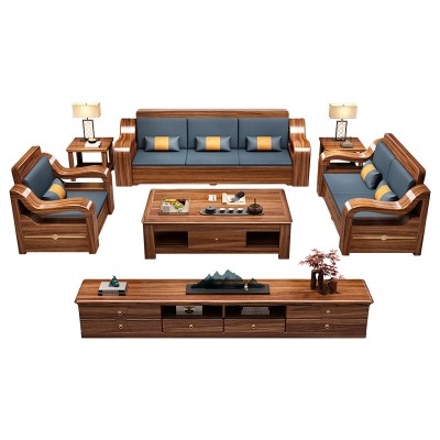 Ebony wood sofa, living room, solid wood combination furniture, modern and simple, winter and summer dual-use household size storage sofa